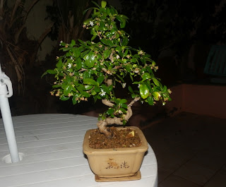Hace poco que tengo un amiguito nuevo, un bonsai, un Serissa phoetida o árbol de las mil estrellas, que me regala una florecita blanca cada día.