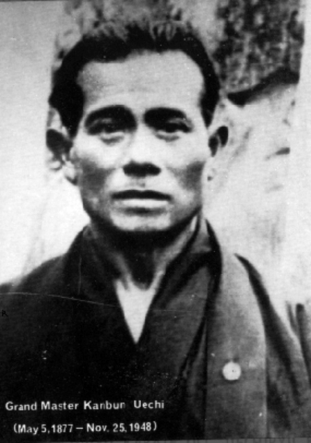 Kanbun Uechi nació en el año 1877. El hijo mayor de Kantoku Uechi y su esposa Tsuru, vivía en una aldea de Motobu al (norte de Okinawa) y creció trabajando en el campo. Cuando tenía 19 años se cumplió su sueño de viajar a China para aprender las técnicas de Chuan-fa y lo realizó con su amigo Tokusaburo Matsuda. Los dos fueron a la famosa escuela de Kugusuku en Fuzhou (actualmente este estilo chino también está en Okinawa), al poco tiempo Kanbun se marchó de esta escuela y luego tuvo la gran suerte de poder aprender con los monjes expertos en las técnicas del dragón, el tigre y la grulla. Sin saber el idioma ni las costumbres chinas, entrenó duramente en calidad de discípulo interno y diez años más tarde logró ser el primer maestro japonés de Chuan-fa/ kung fu / wu shu en China.