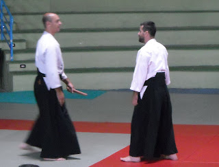Ahora estamos mostrando zanshin en otras ocasiones de nuestra práctica … no sólo después de terminar una técnica. Uno se siente muy mal, incluso en peligro al quitar los ojos de uke demasiado pronto. Tenemos una conciencia que no existía antes. Estamos mostrando zanshin durante la práctica la mayor parte del tiempo. Tenemos una calma que está ahí, incluso durante la acción fuerte, intensa. A menudo se dice que hay una cualidad de quietud en la acción y acción en la quietud.